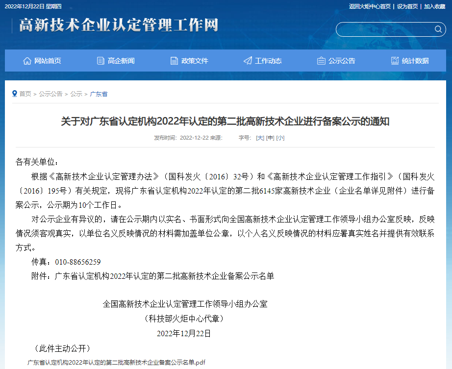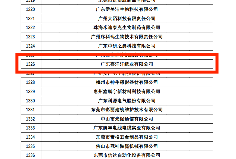 根據(jù)《高新技術企業(yè)認定管理辦法》(國科發(fā)火〔2016〕32號)和《高新技術企業(yè)認定管理工作指引》(國科發(fā)火〔2016〕195號)有關規(guī)定,現(xiàn)將廣東省認定機構2022年認定的第二批6145家高新技術企業(yè)(企業(yè)名單詳見附件)進行備案公示,公示期為10個工作日。廣東喜洋洋紙業(yè)有限公司名列其中。